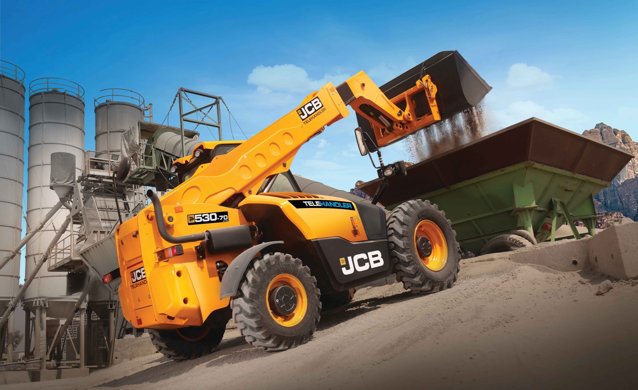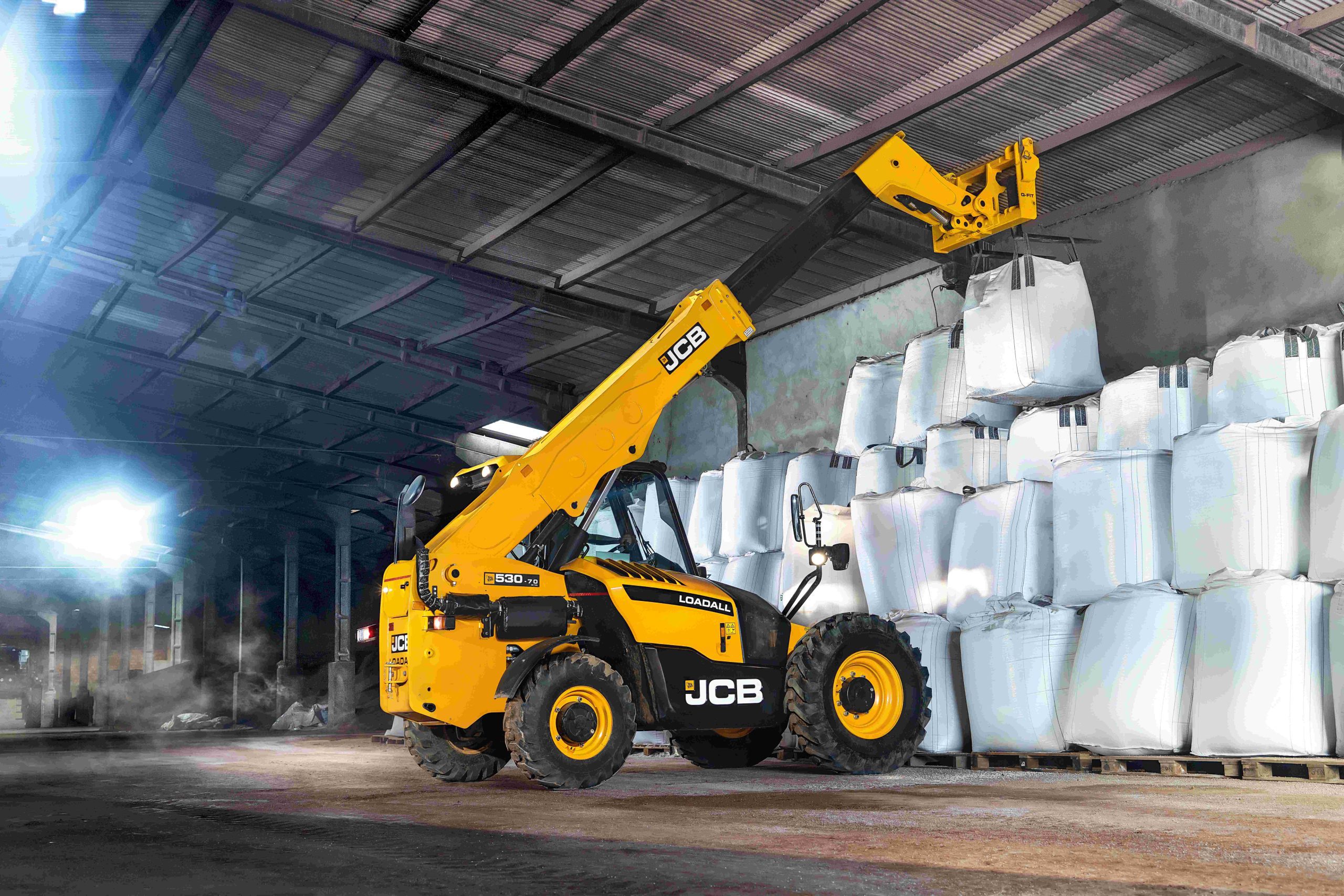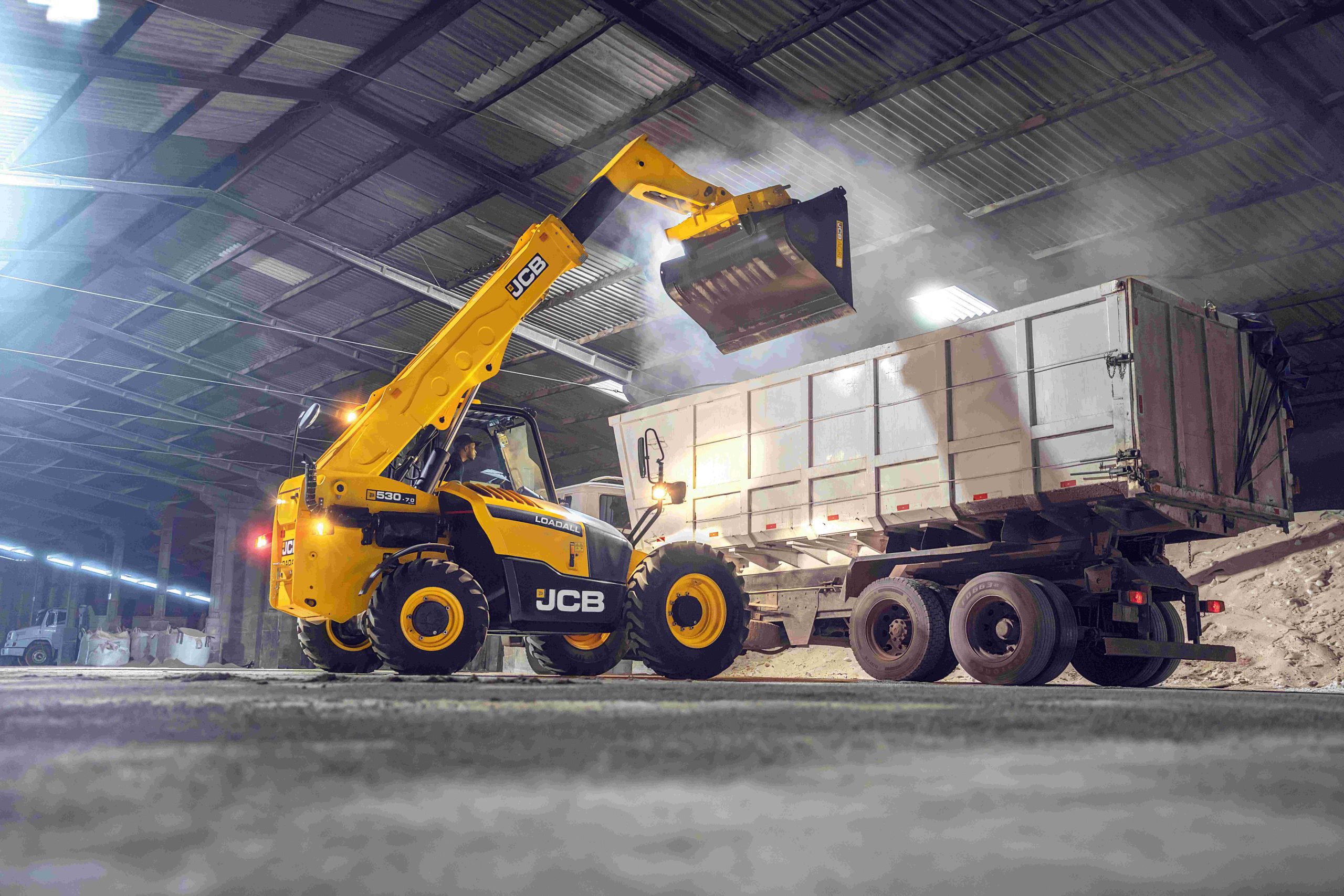 JCB 530-70 safely lifts loads of up to 3,000 kg with 2,500kg to a vertical lift height of 7 m, perfect for loading high sided trailers and hoppers. The strength of JCB’s telescopic boom and hydraulics allows 530-70 to reach forward and place a normal construction or industrial load of 1,000 kg 3.83 m in front, replacing manual handling.